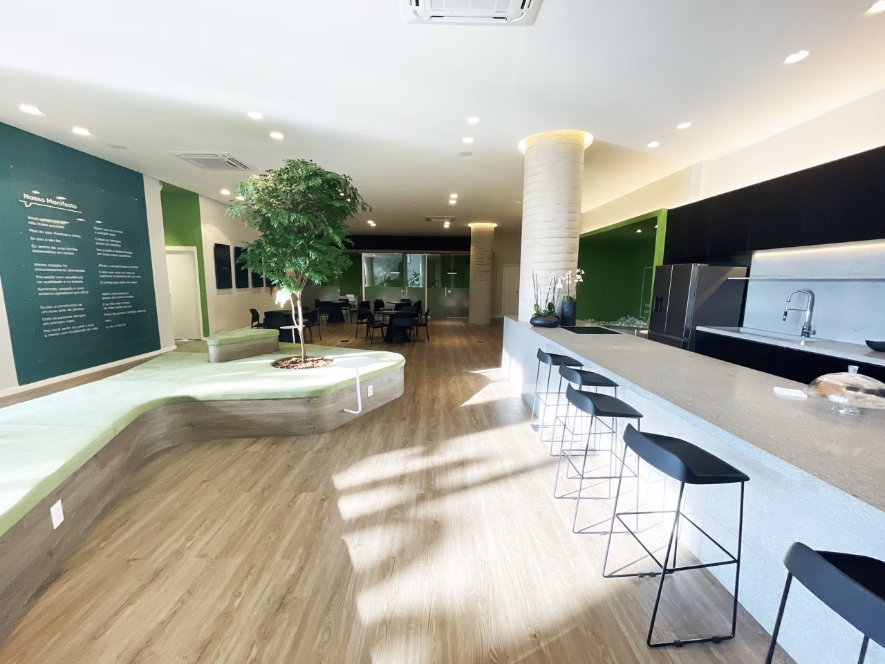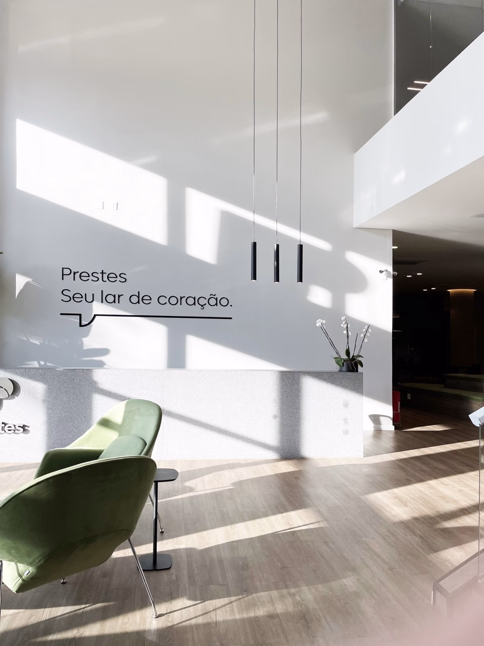 O projeto para a Construtora Prestes assinado pelo arquiteto Felipe Rossi, contempla 456,62m² de loja térrea e um mezanino de 324,46m². A construção e finalização foram completamente executadas por nós e ocorreram dentro de um período de aproximadamente 300 dias.