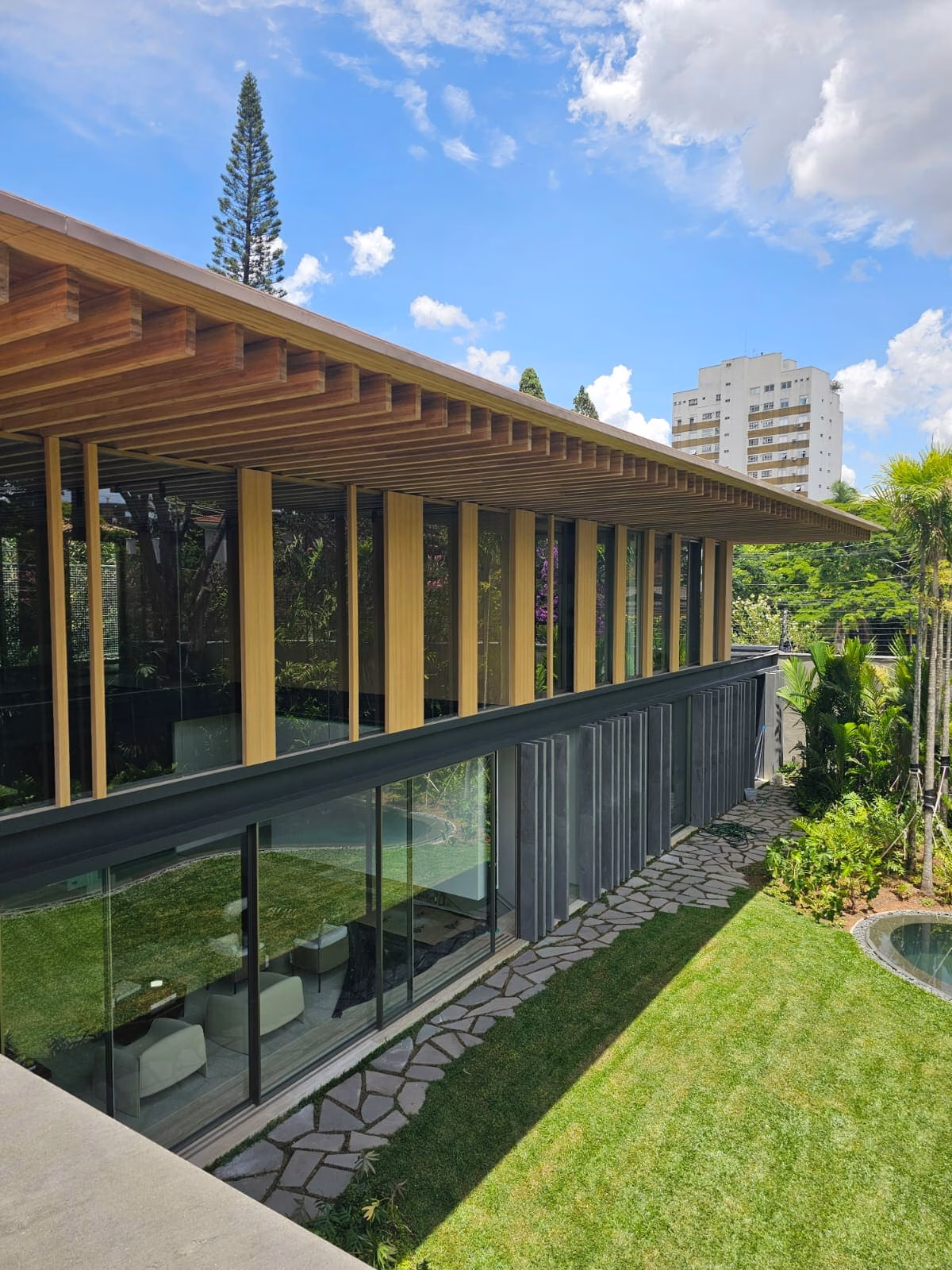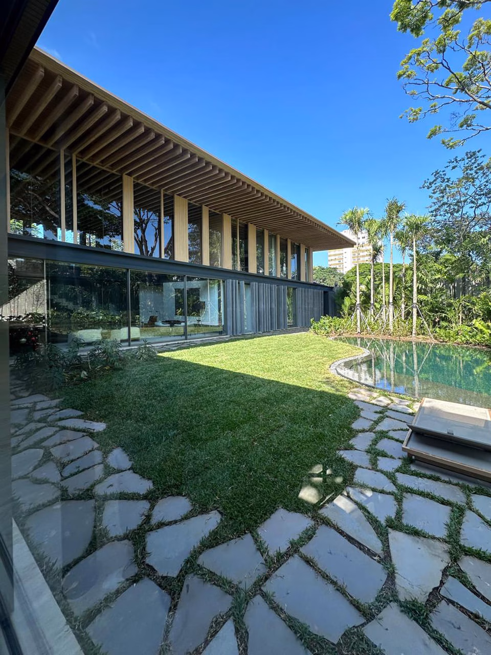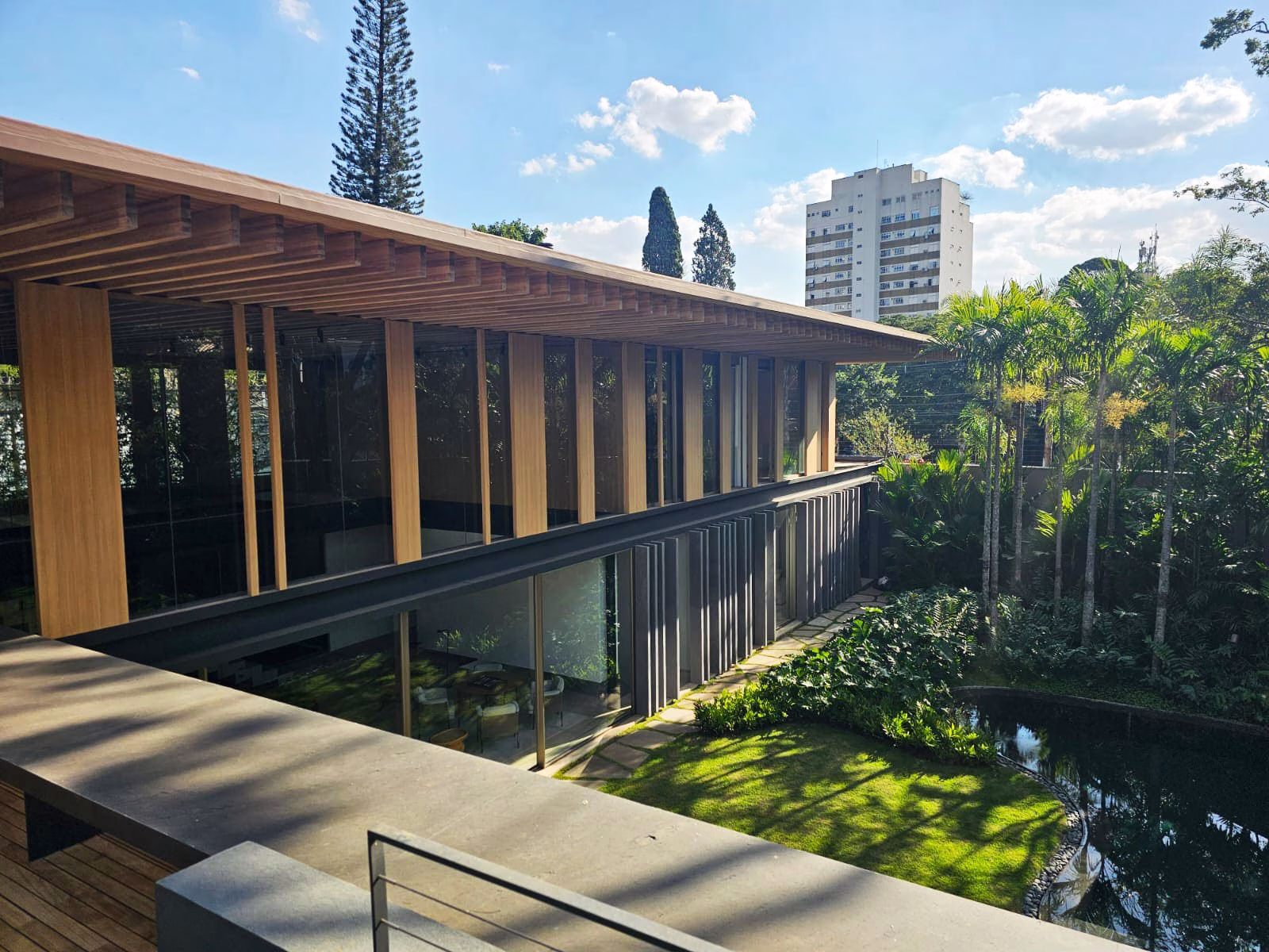 Com projeto assinado por Jacobsen Arquitetura e paisagismo por Isabel Duprat, a residência impressiona pelas dimensões e amplitude preservada em todos os ambientes.